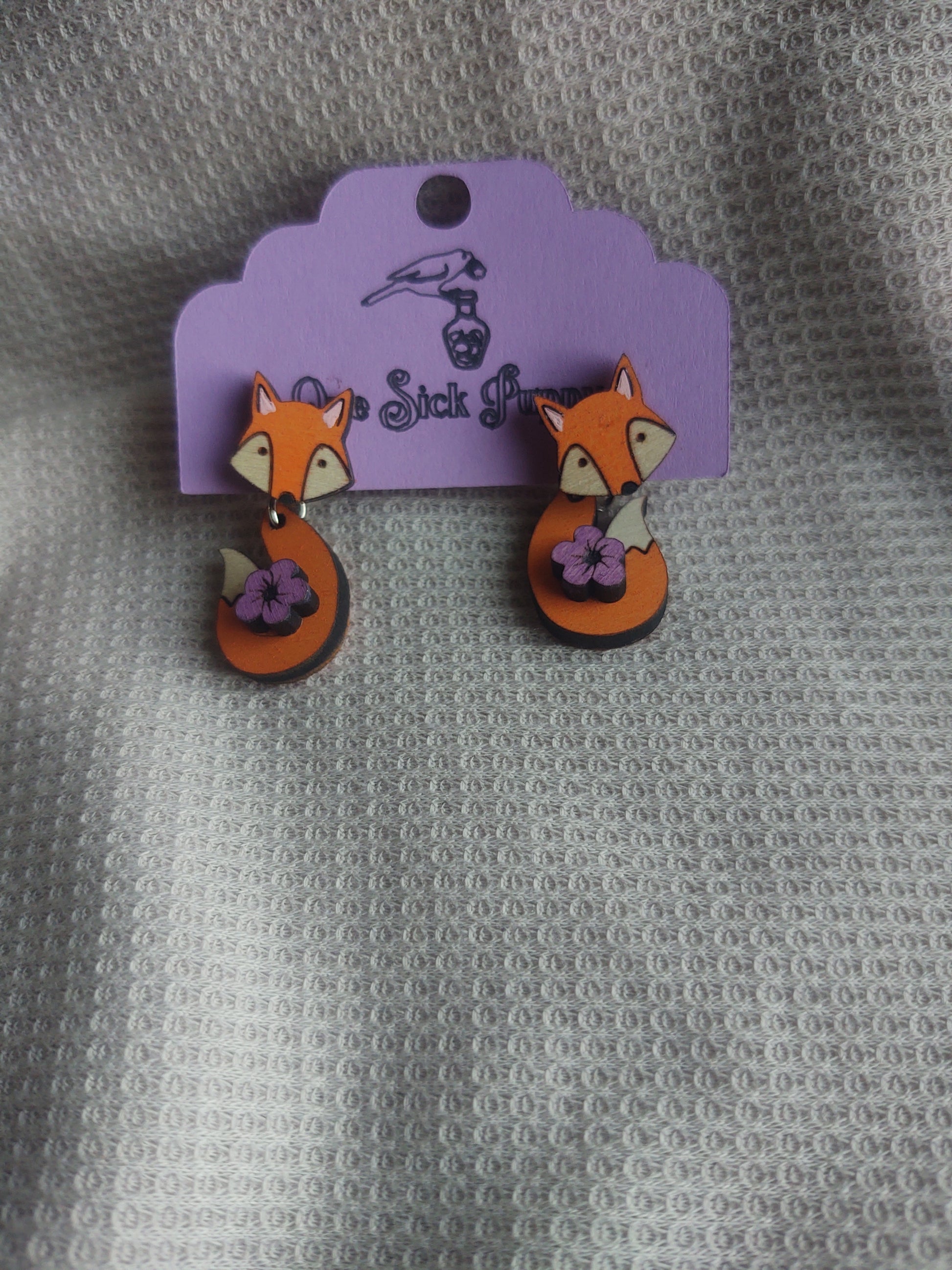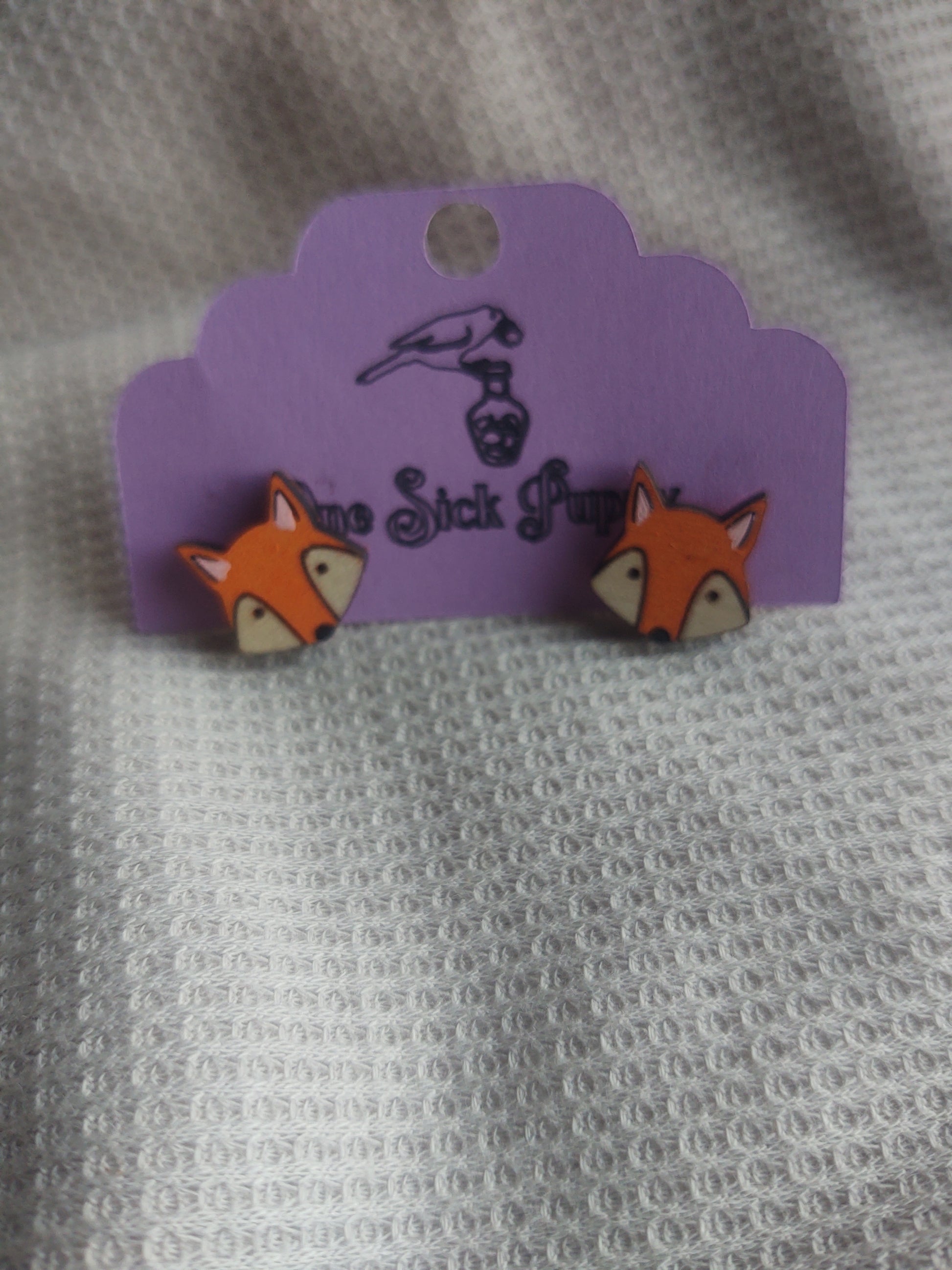Laser cut resin topped wood earrings with nickel free stainless steel posts.