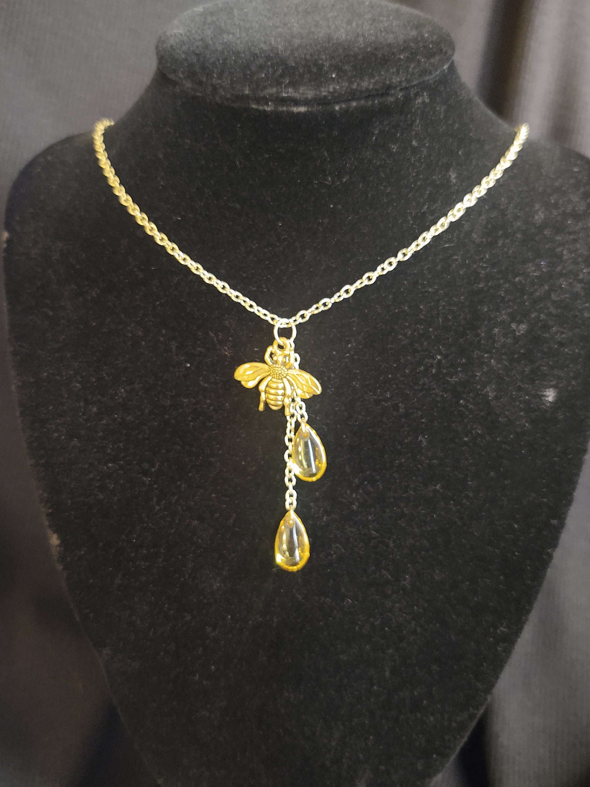 Metal and glass bead bee pendant on 19'' gold plated chain.