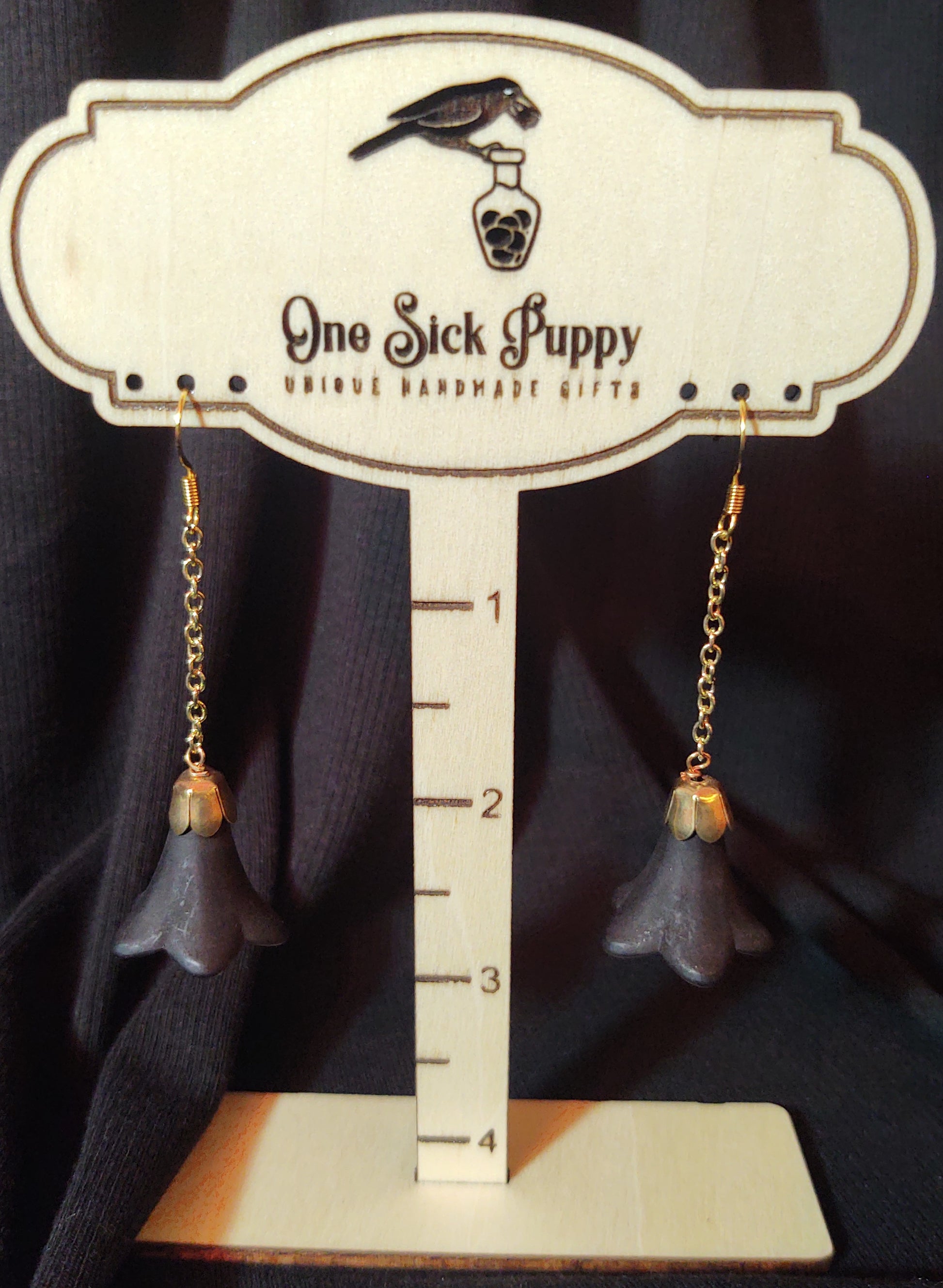 Acrylic bells with gold accents. Hooks are gold plated nickel free stainless steel.