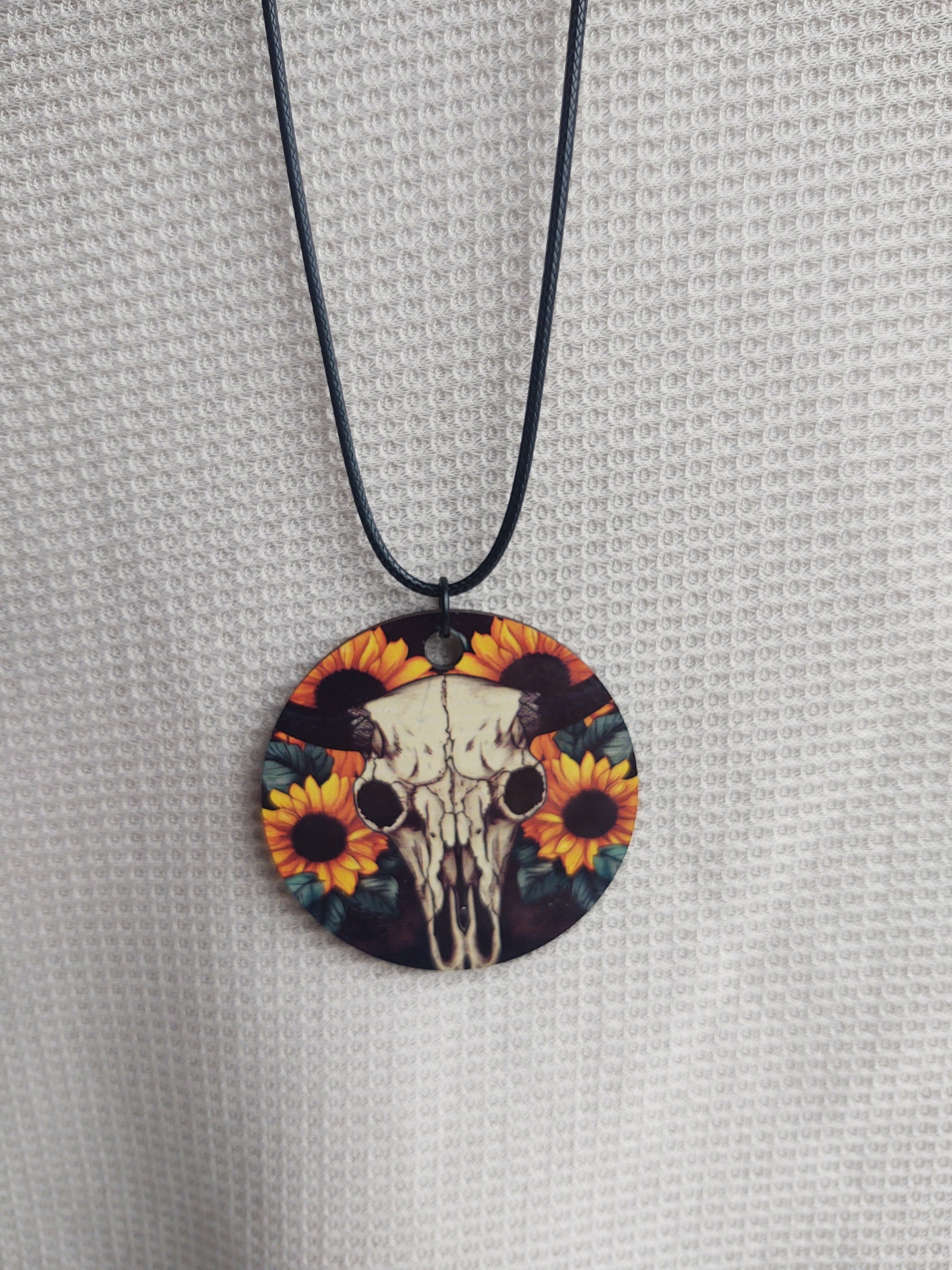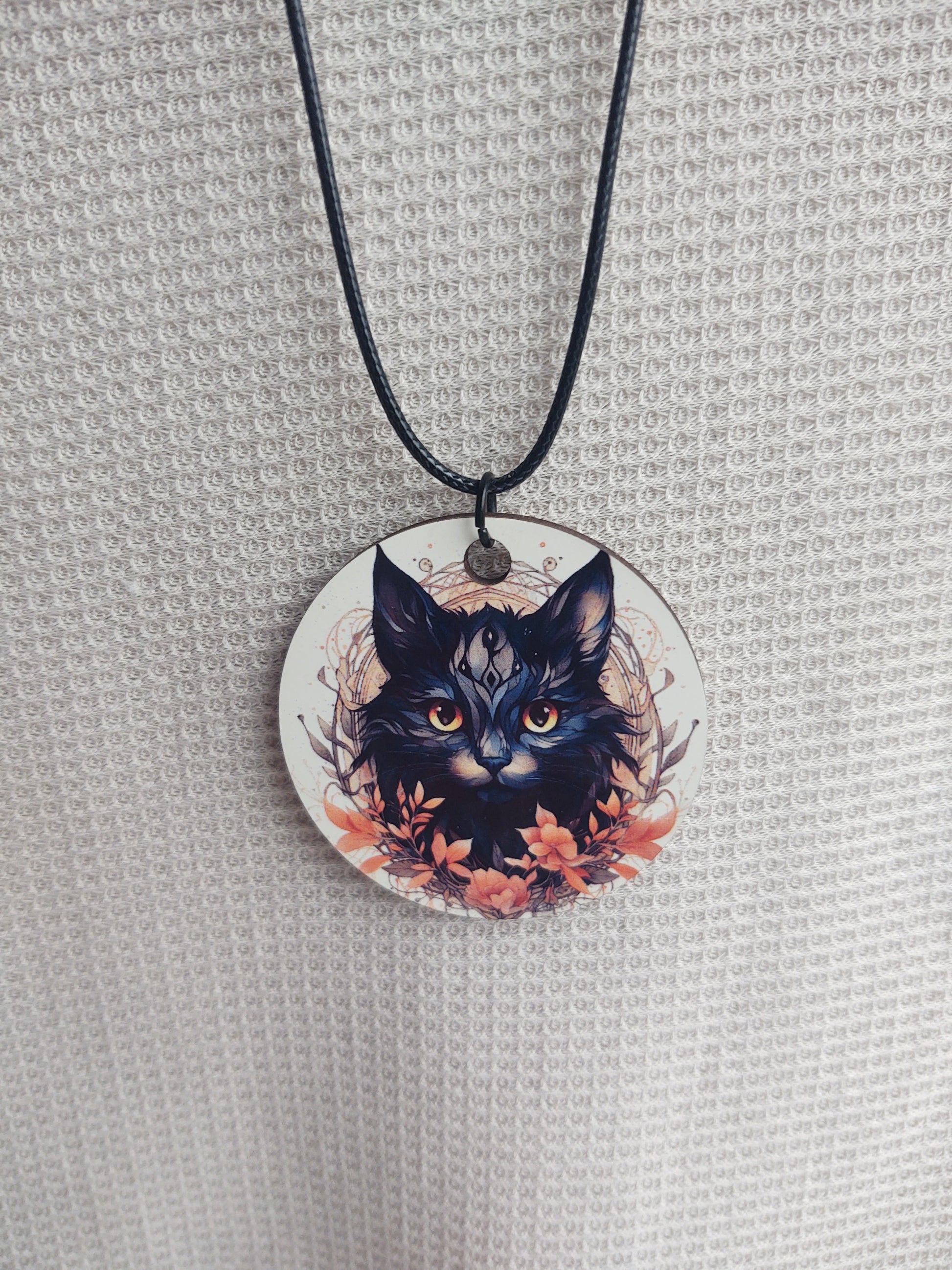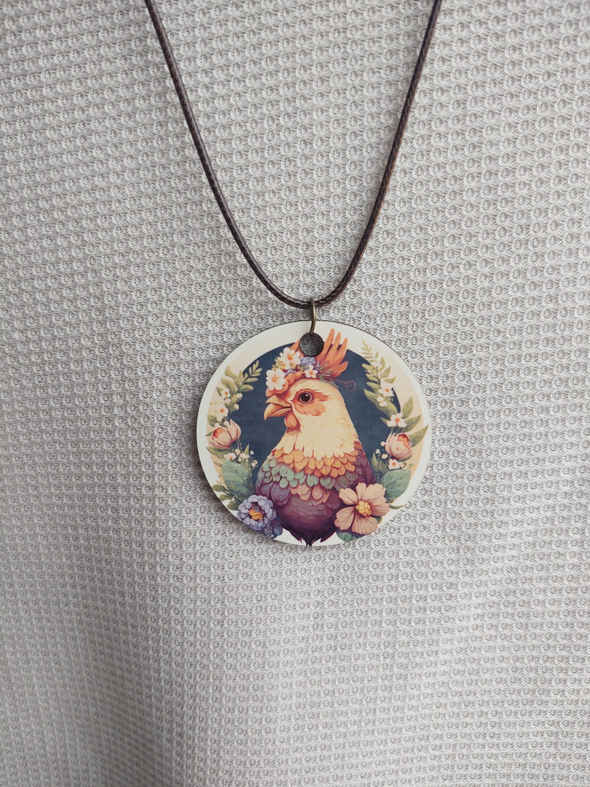 Sublimated 2in pendent Necklaces on 18in waxed leather chain.