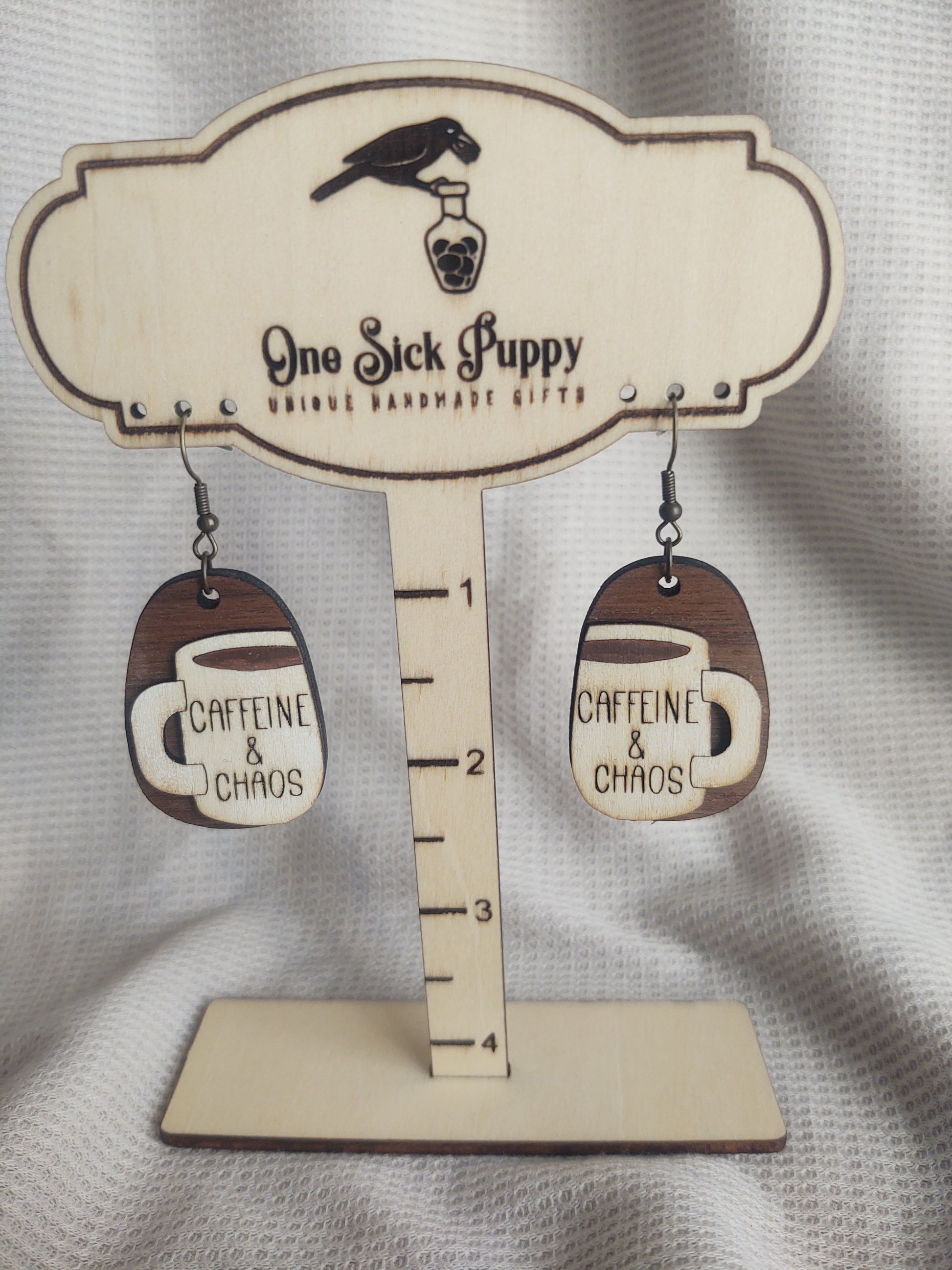Caffine and Chaos Wooden Dangles
