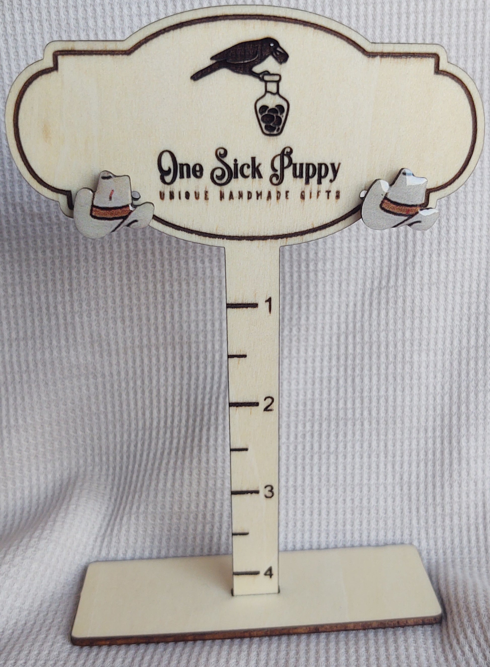 Laser cut resin topped wood earrings with nickel free stainless steel posts.
