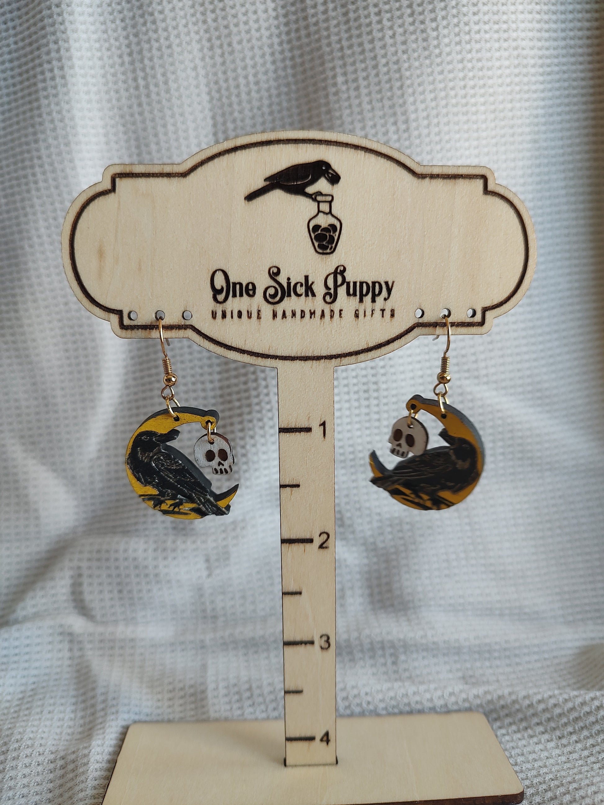Crescent Moon Crow Earrings