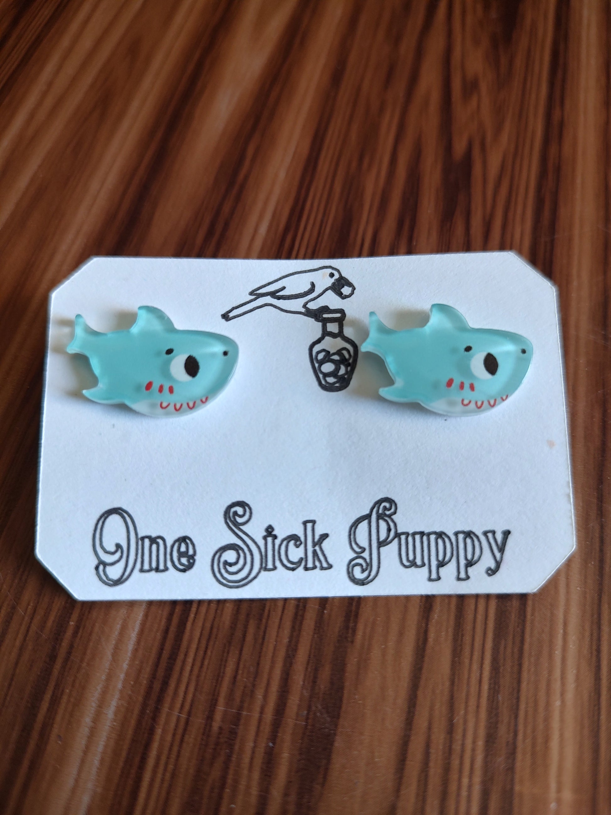 Acrylic earrings with gunmetal plated nickel free stainless steel posts.