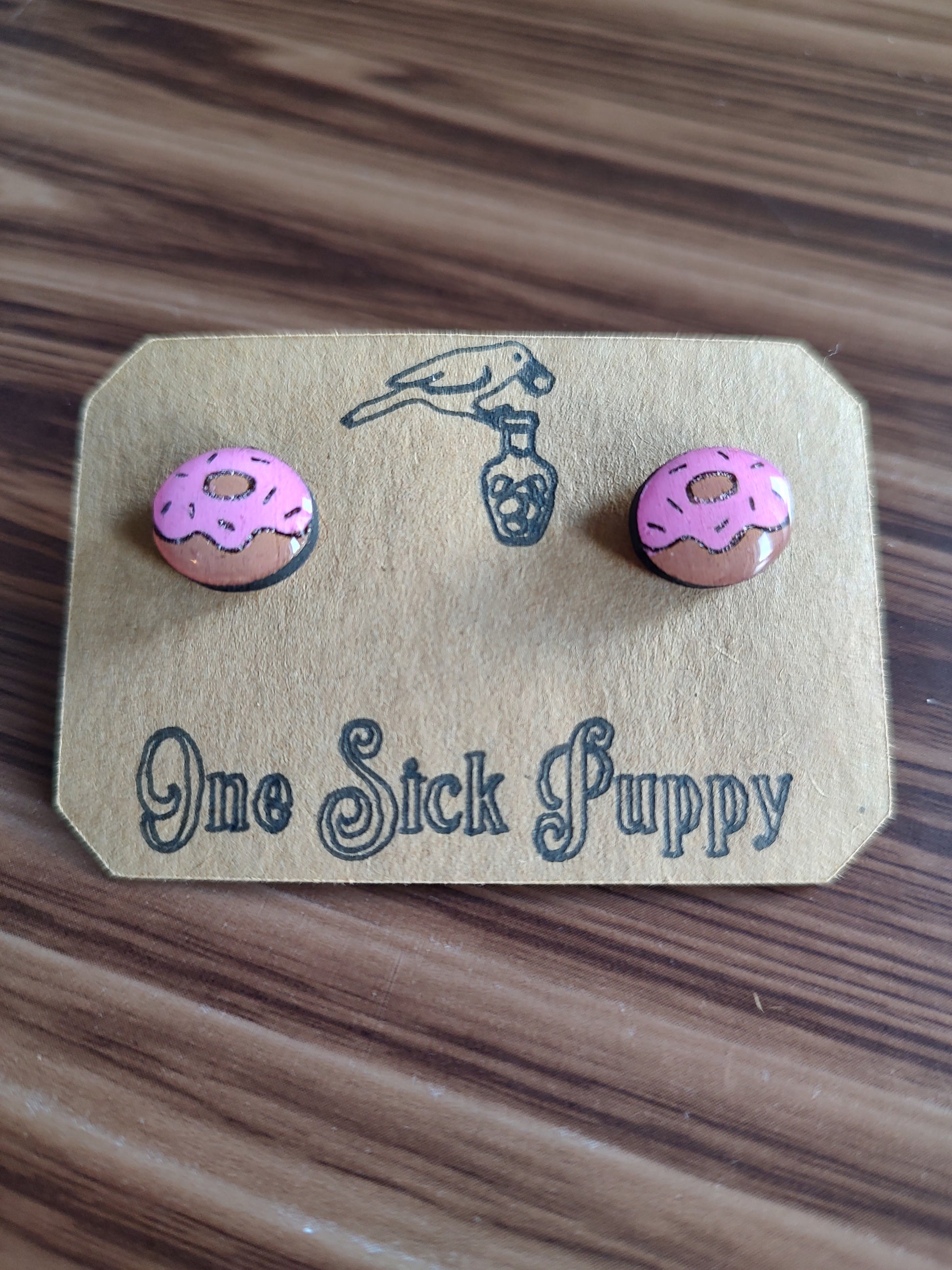 Laser cut resin topped wood earrings with nickel free stainless steel posts.