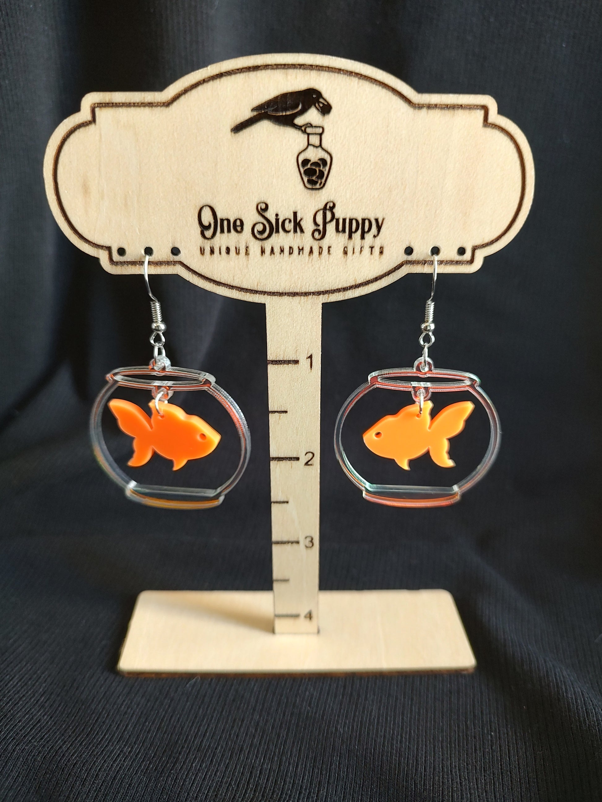 Laser cut acrylic earrings with gunmetal plated nickel free stainless steel hooks.