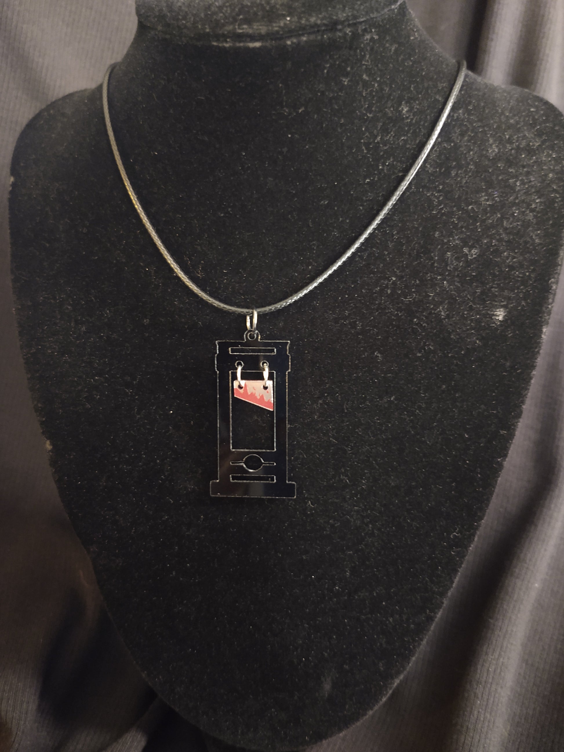 Acrylic Pendent on braided leather cord. Necklace length is 17'' extendable up to 19''.
