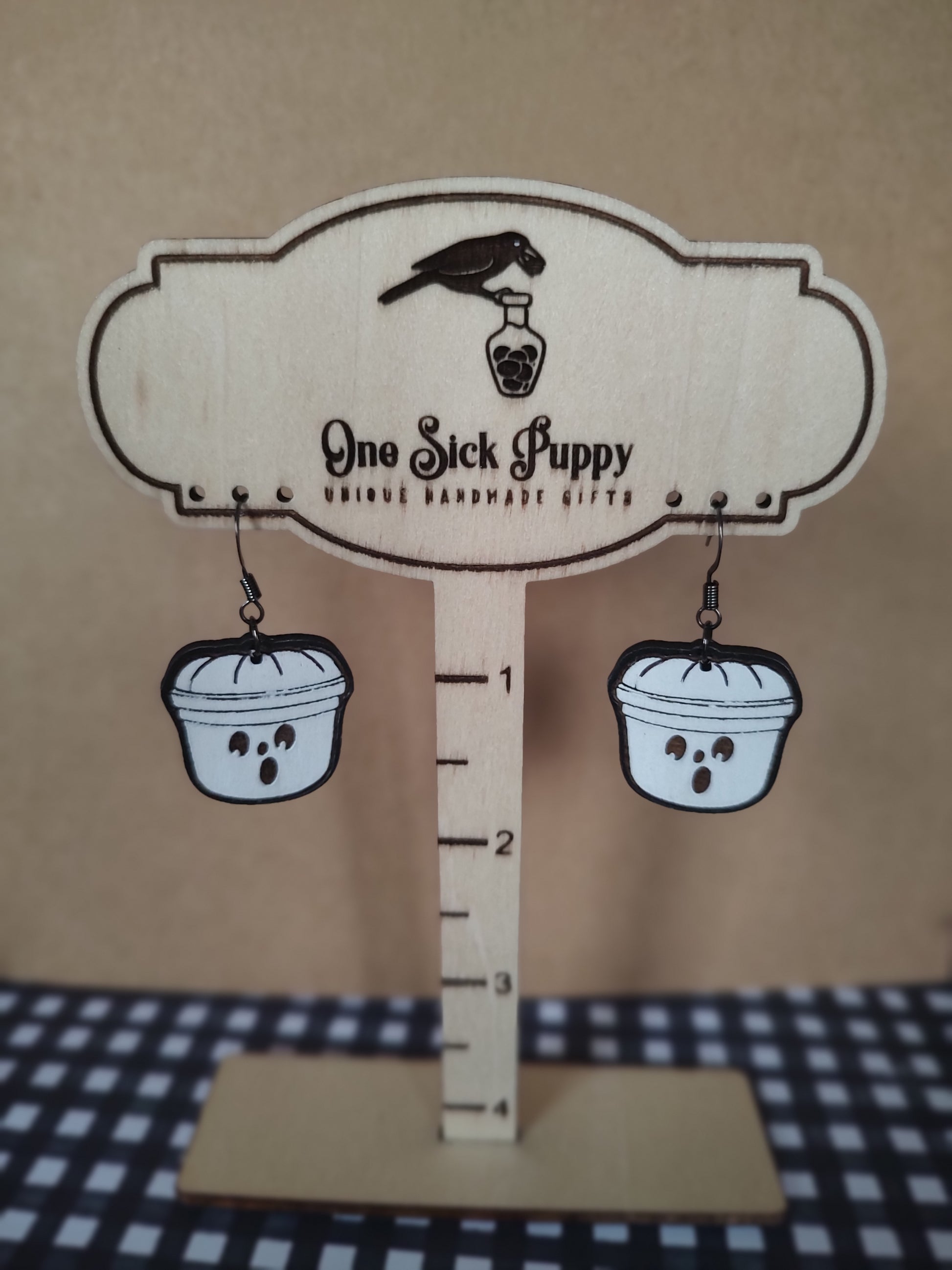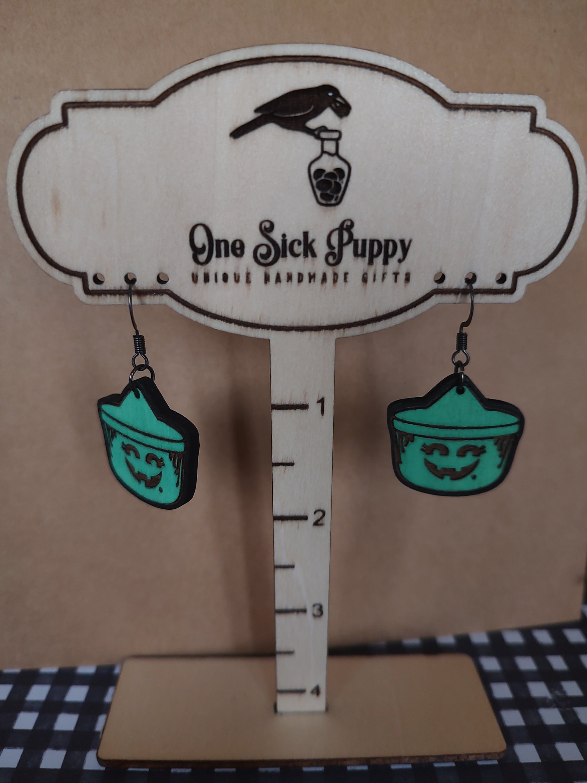 Lightweight laser cut, hand painted wood dangle earrings with nickel free stainless steel hooks.
