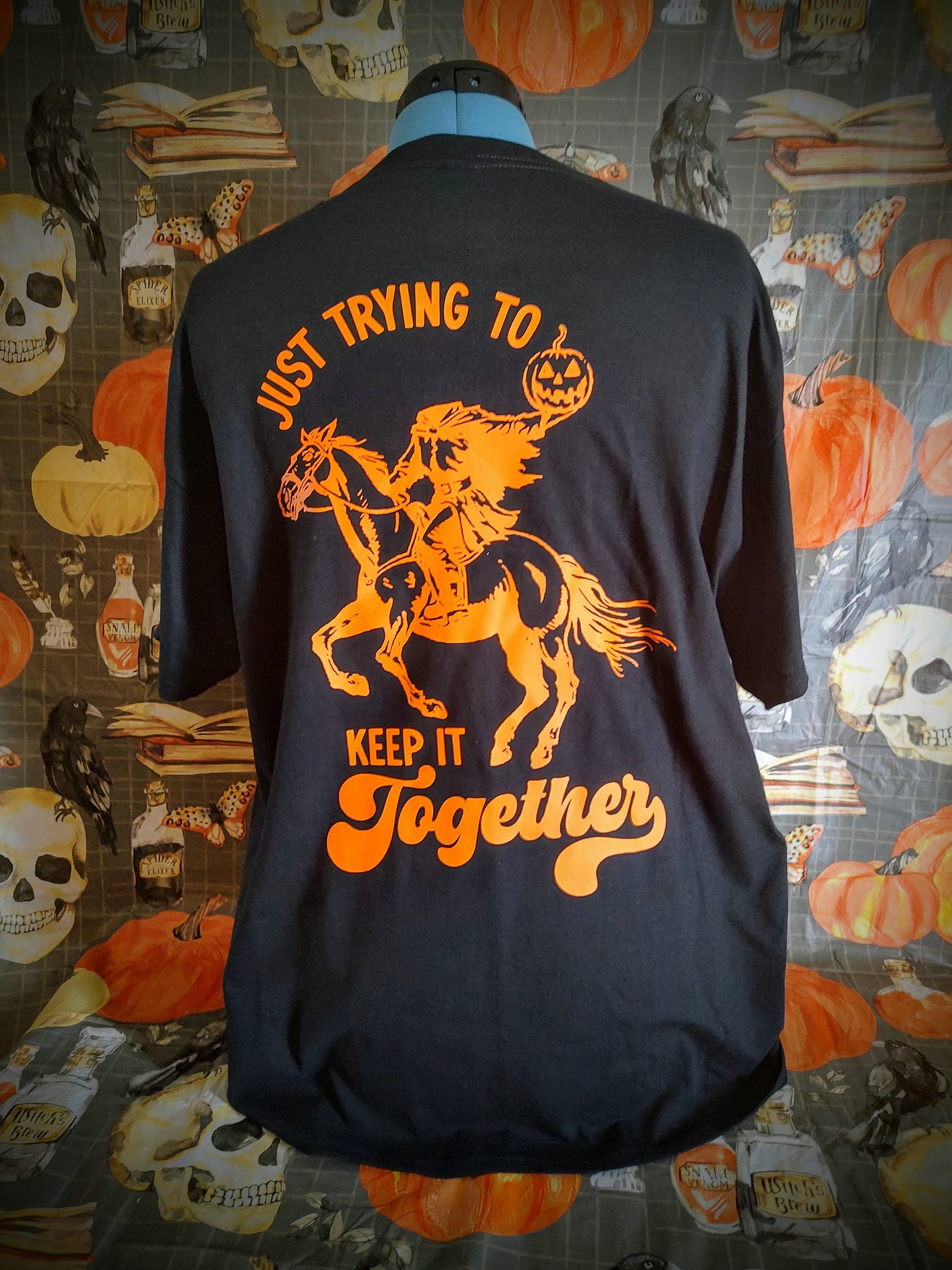 "Unleash your inner horseman with this 100% cotton shirt. Let the Sleepy Hollow vibes take over and ride in style with our iconic vinyl Headless Horseman design. Perfect for anyone, our unisex shirt is sure to turn heads."