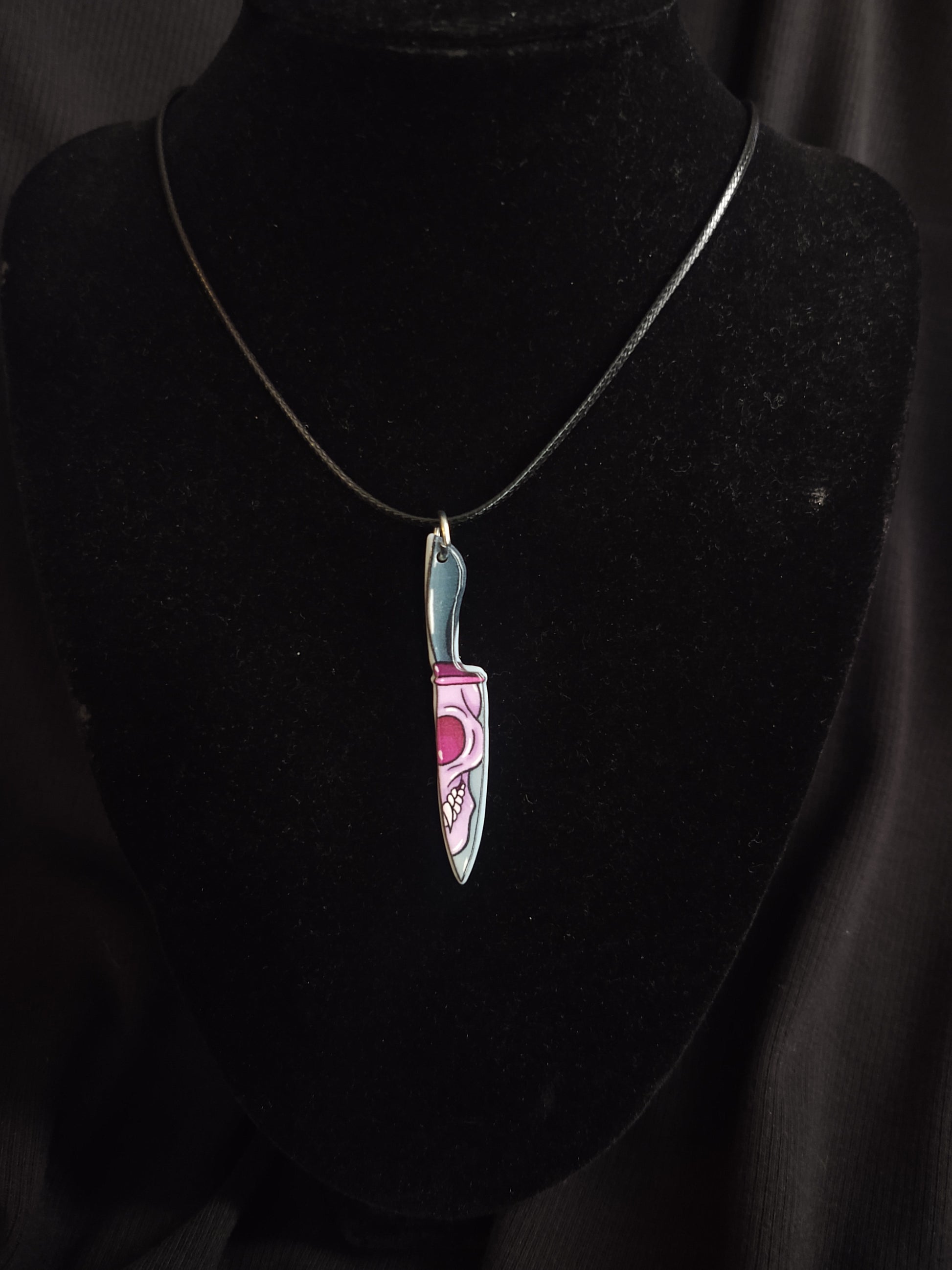 Double sided acrylic Pendent on braided leather cord. Necklace length is 17'' extendable up to 19''.
