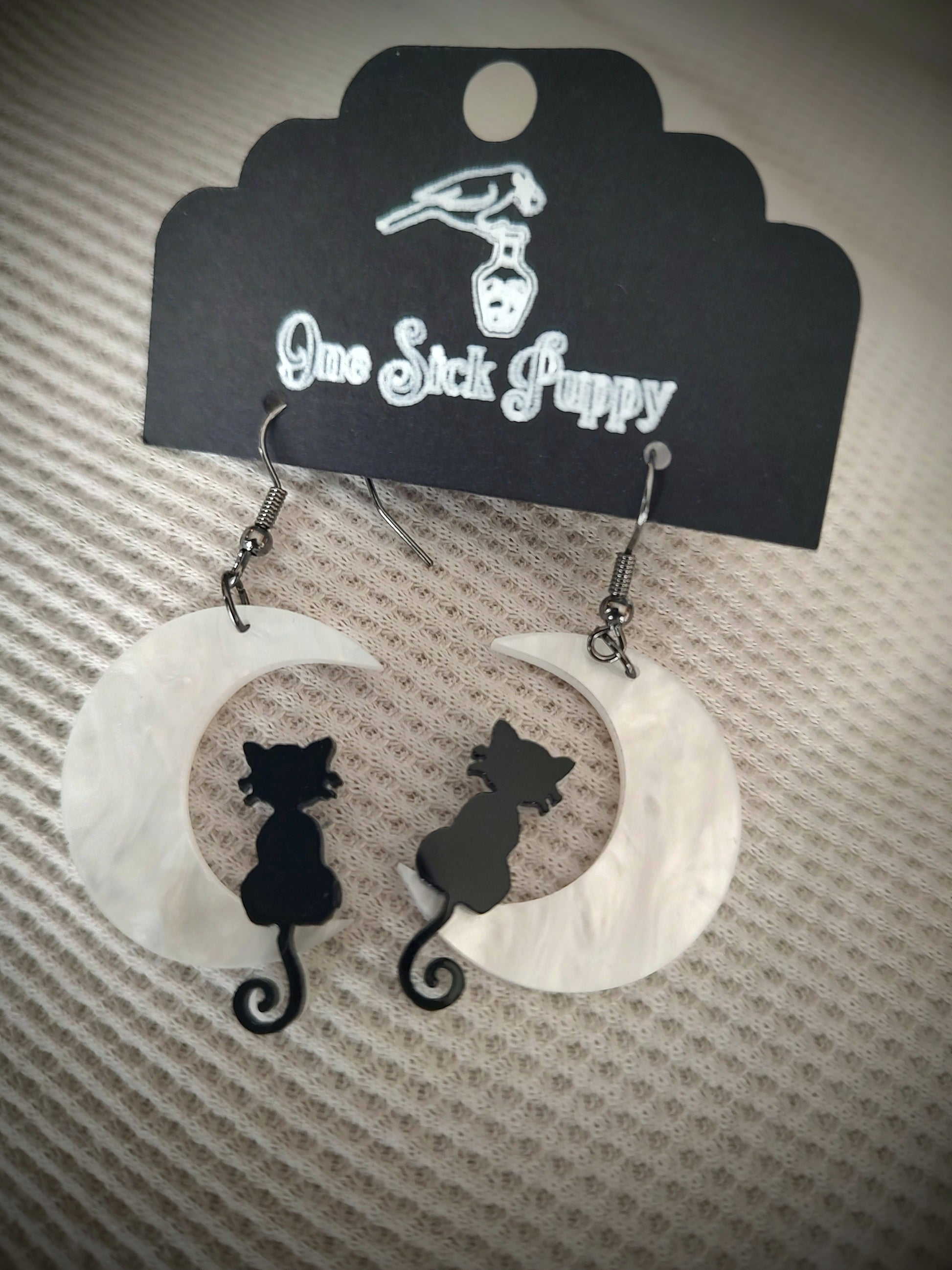 Laser cut acrylic earrings with nickel free stainless steel hooks.