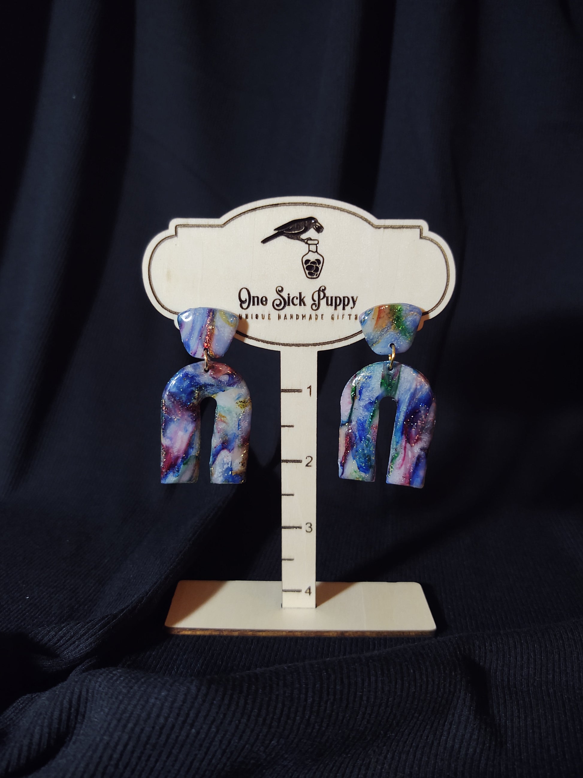 Polymer clay earrings with gold leaf accents. Posts are surgical steel. Due to the nature of the product each pair has variations of color and pattern.