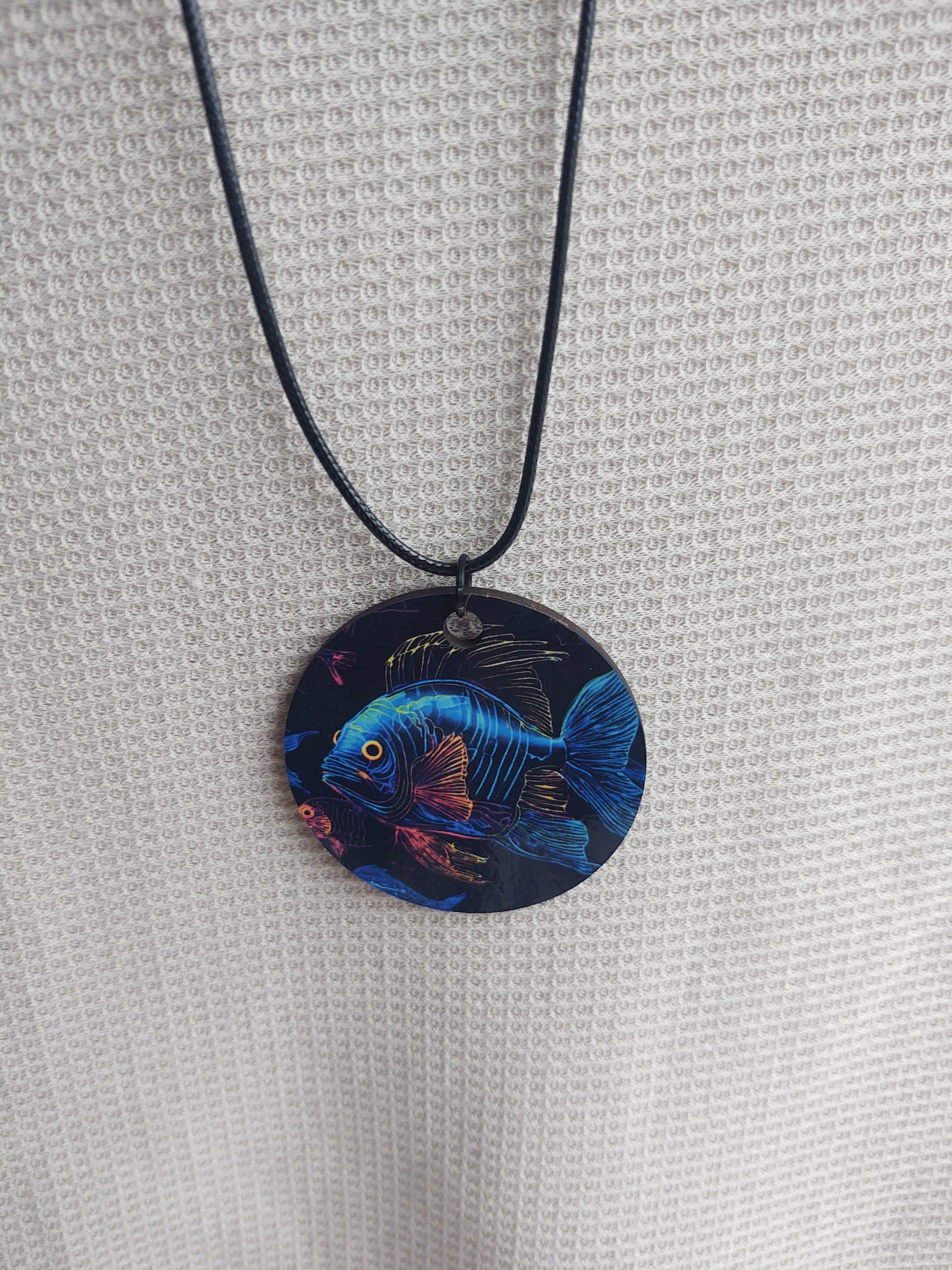 Sublimated double sided 2in pendent Necklaces on 18in waxed leather chain.