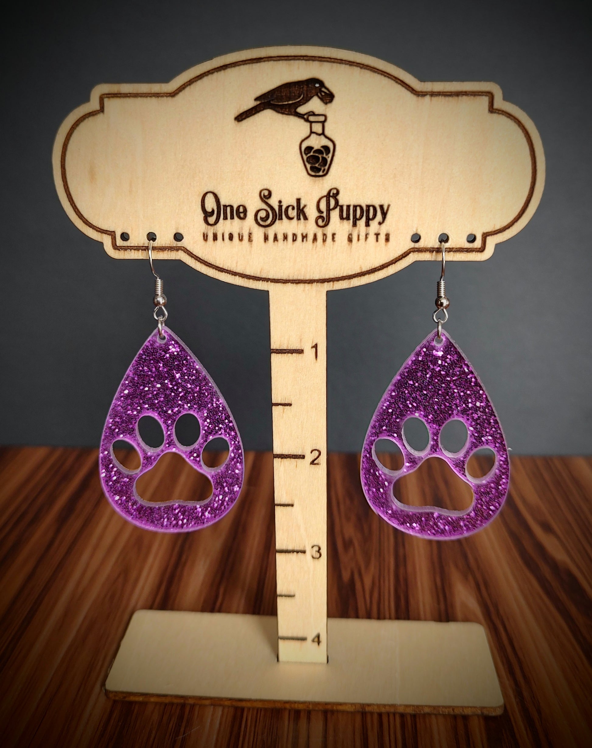 Laser cut acrylic earrings with nickel free stainless steel hooks.