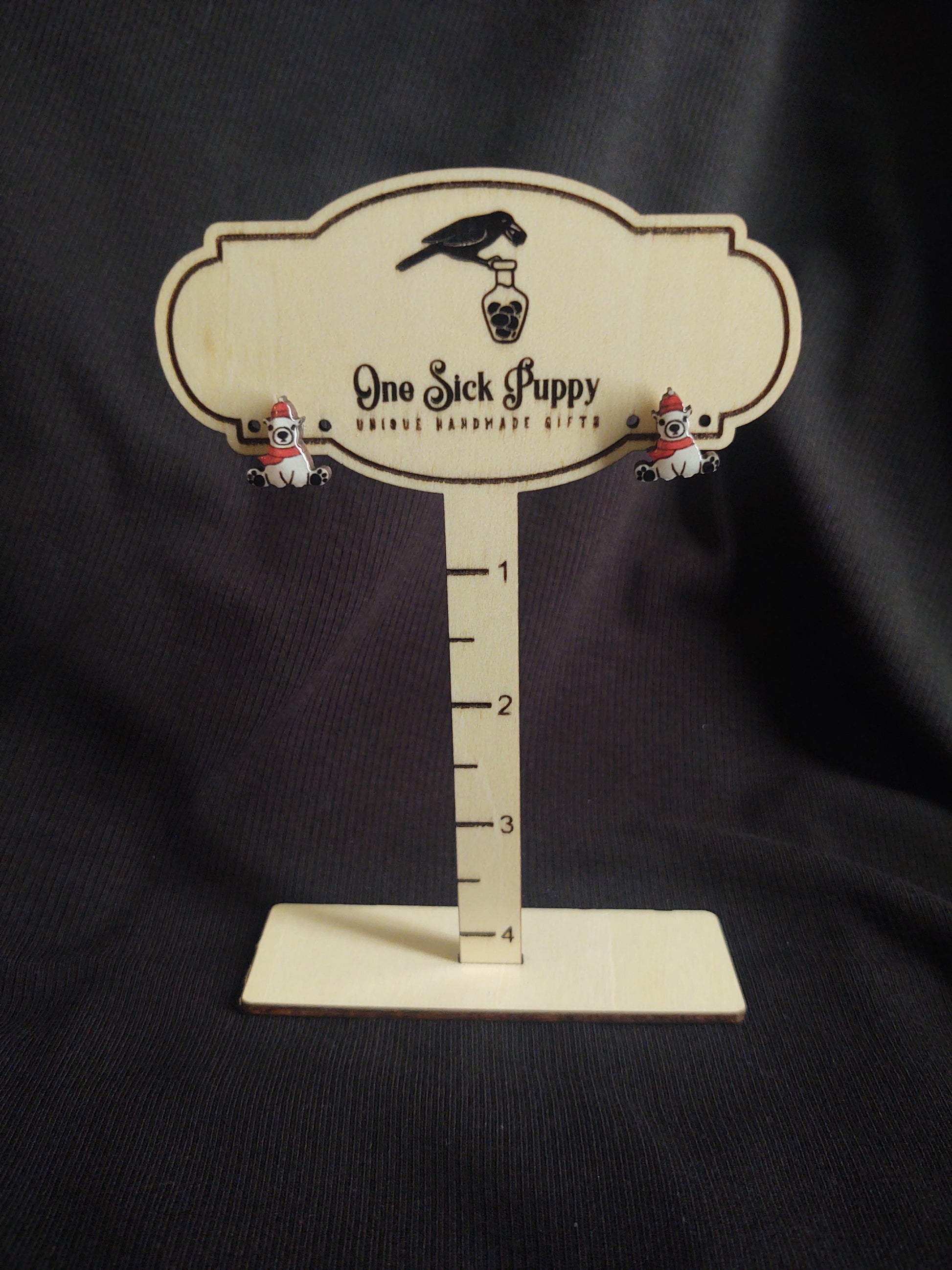 Laser cut resin topped wood earrings with nickel free stainless steel posts.