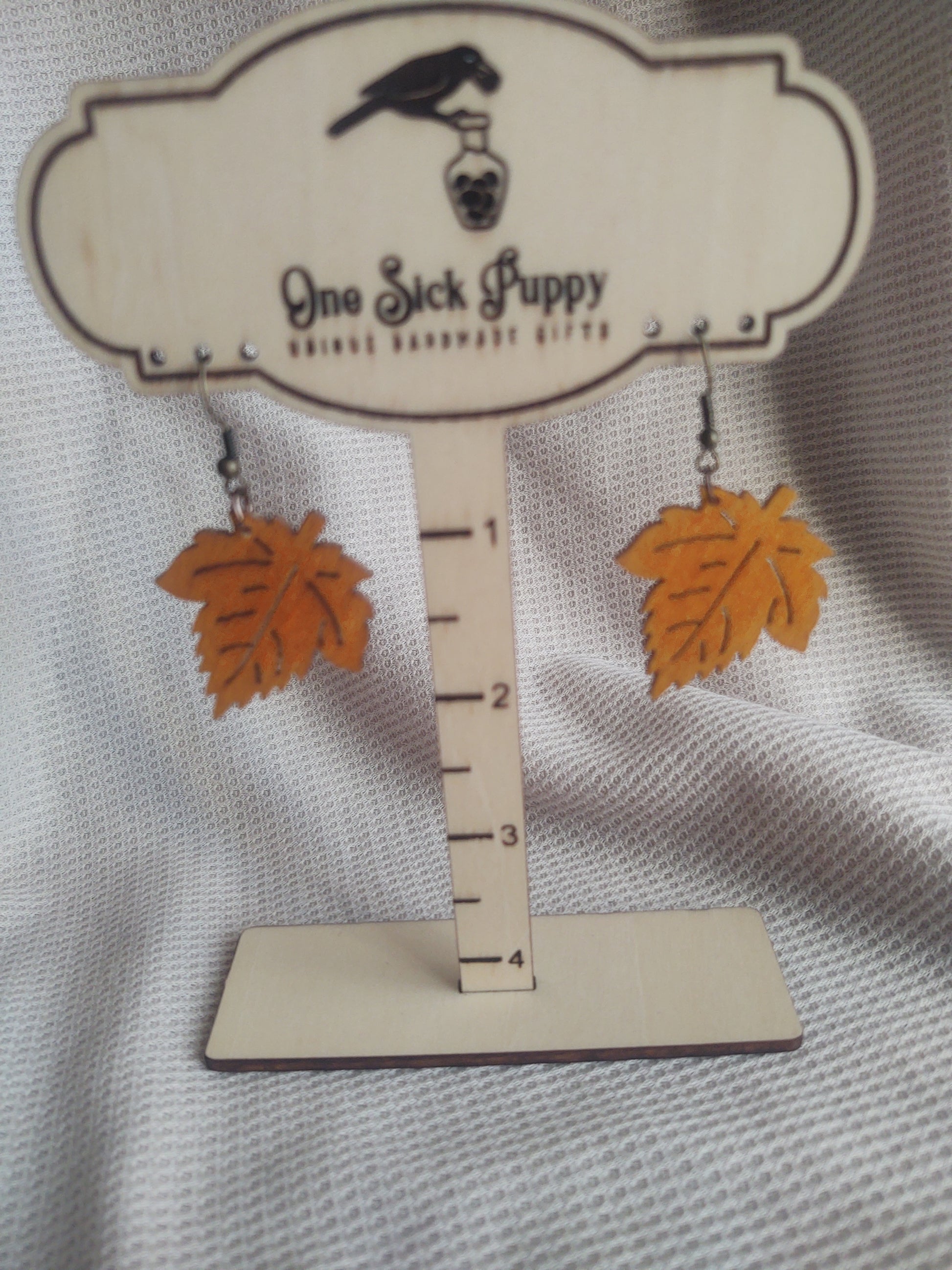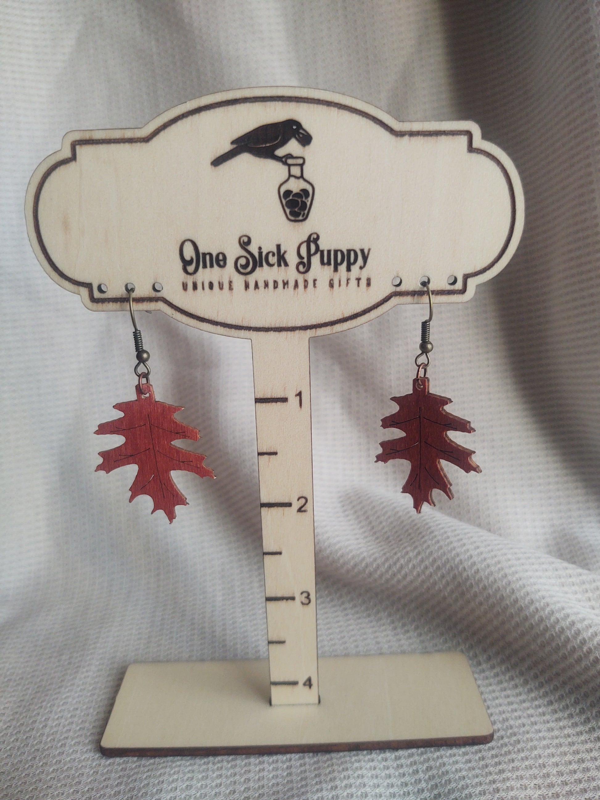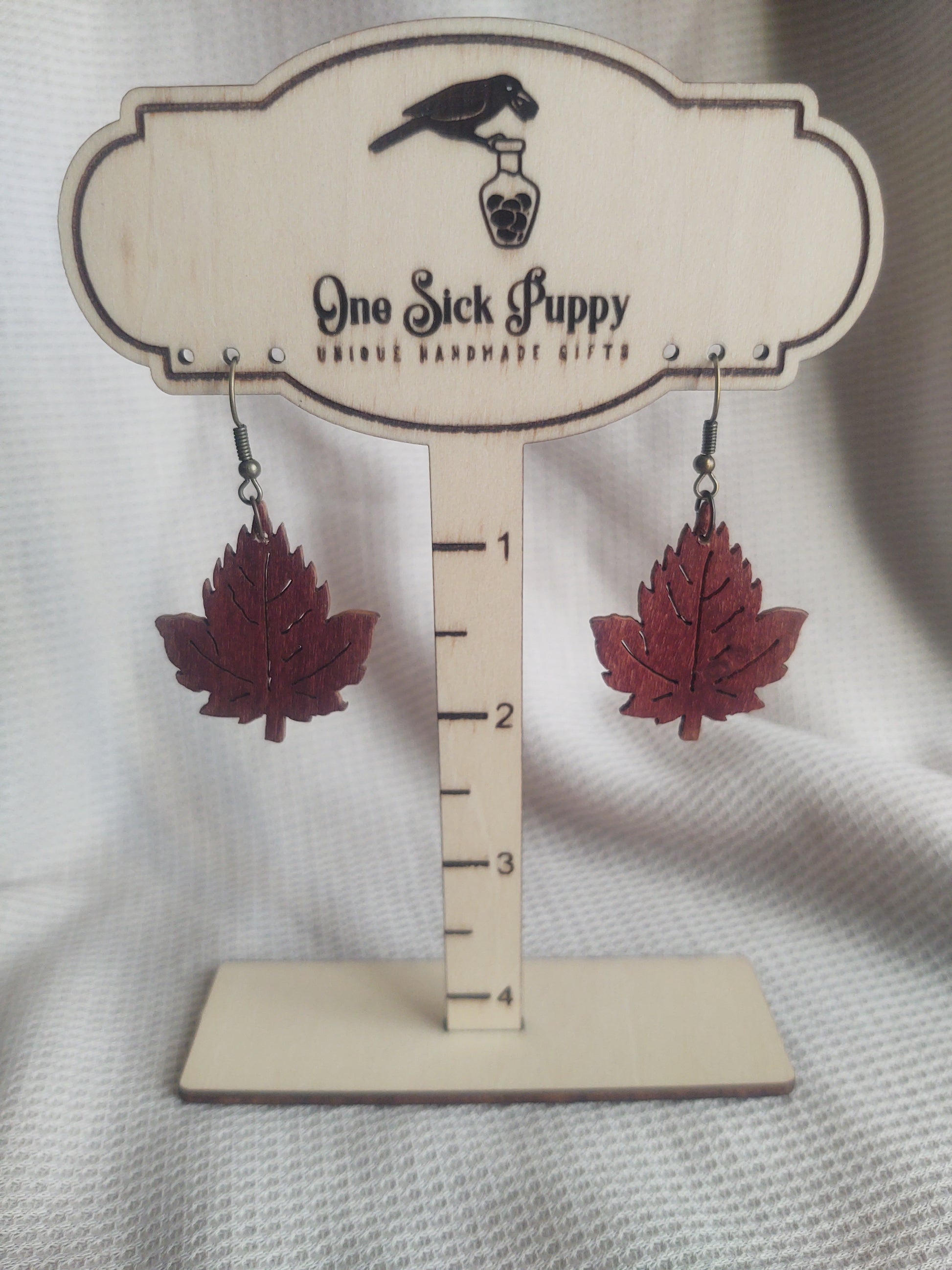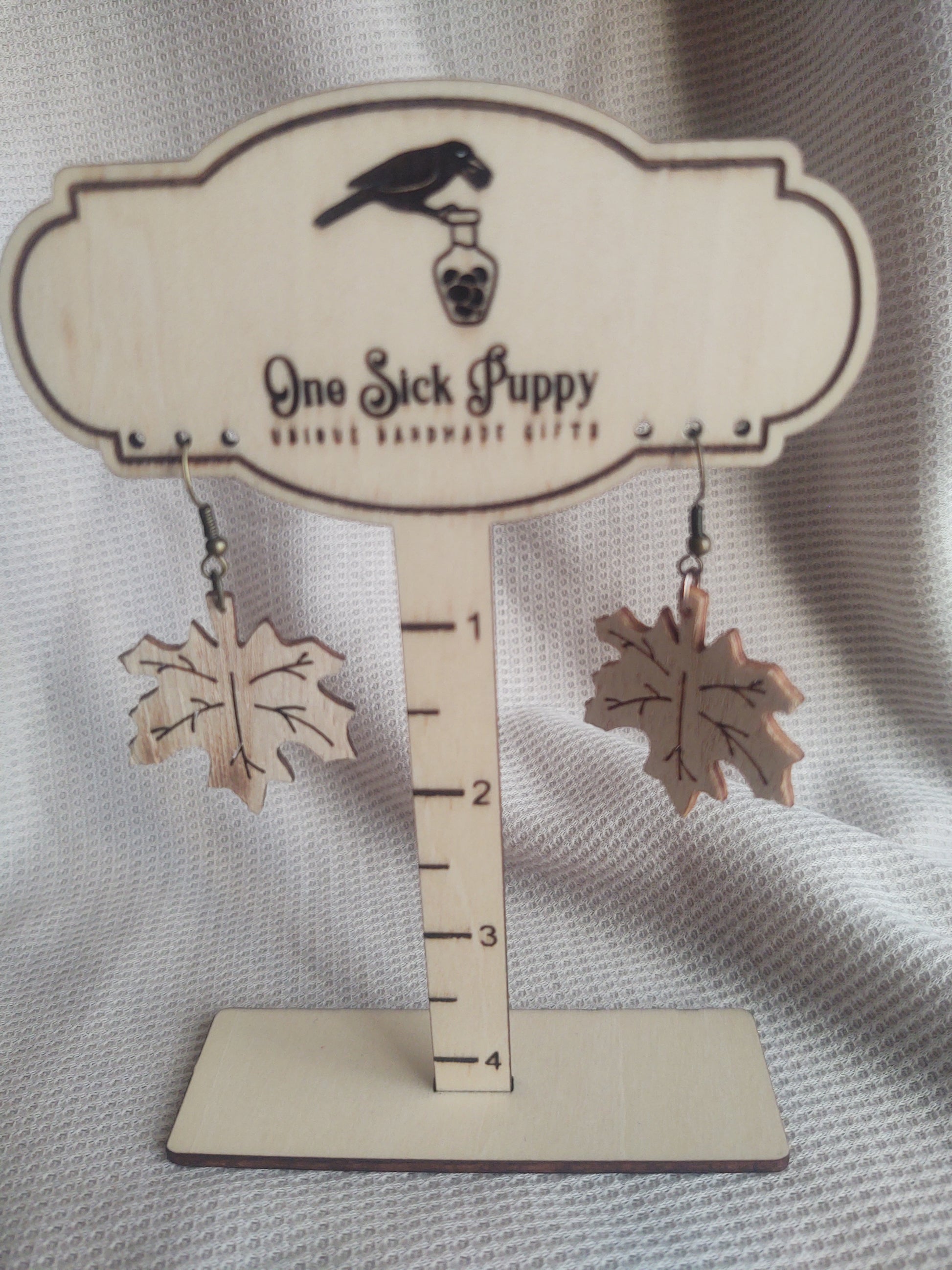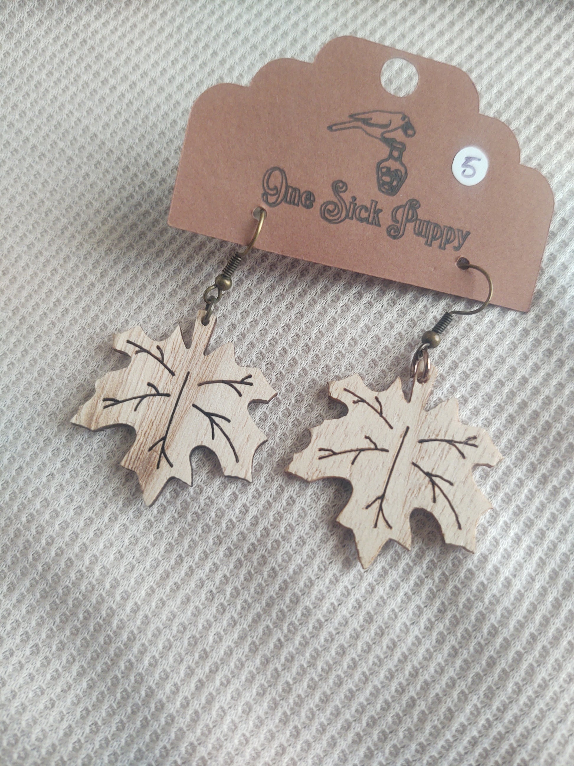 Laser cut hand painted wood earrings with bronze plated nickel free stainless steel hooks.