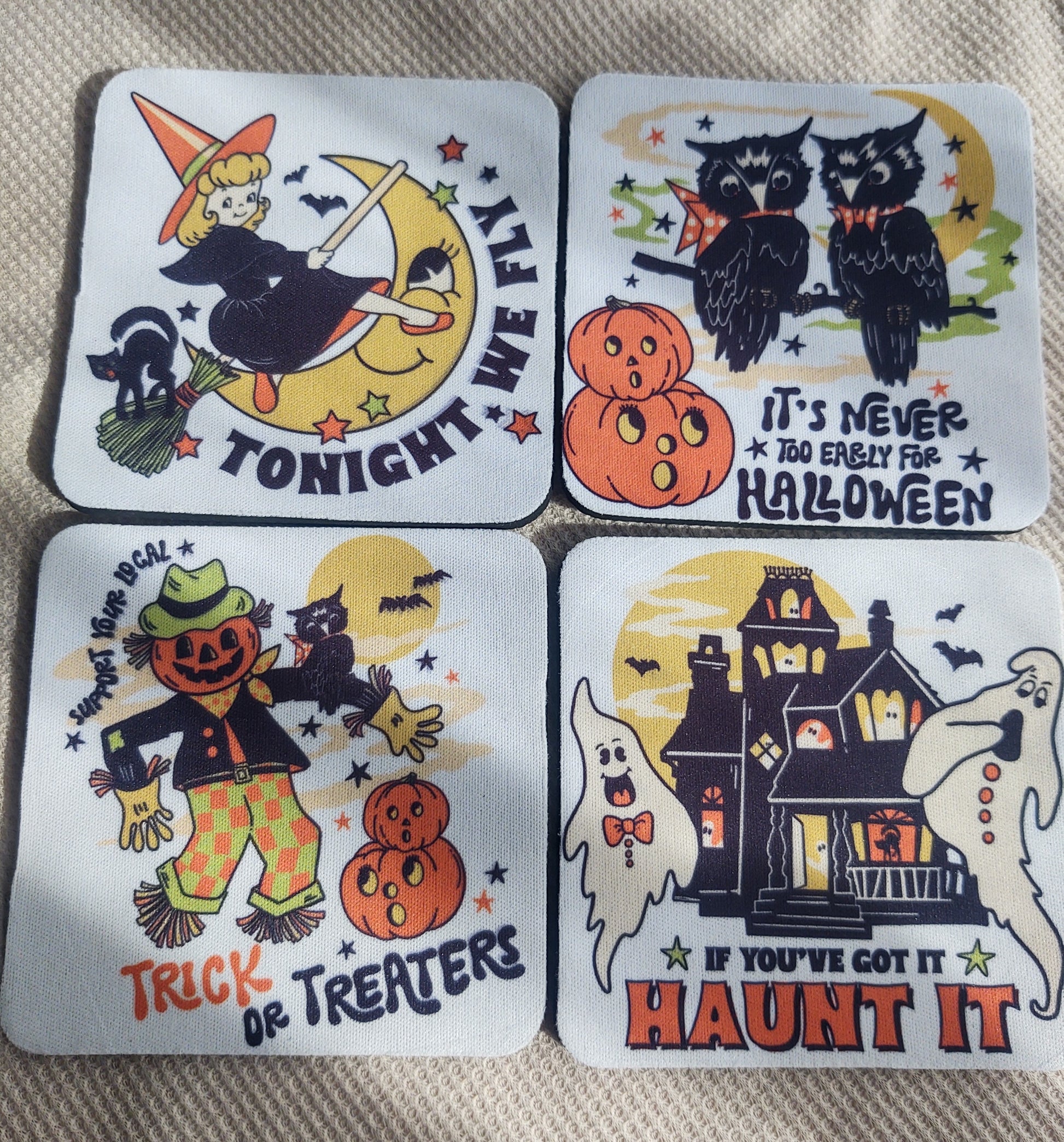 Set of 4 flexible 3.5x3.5 neoprene coasters.