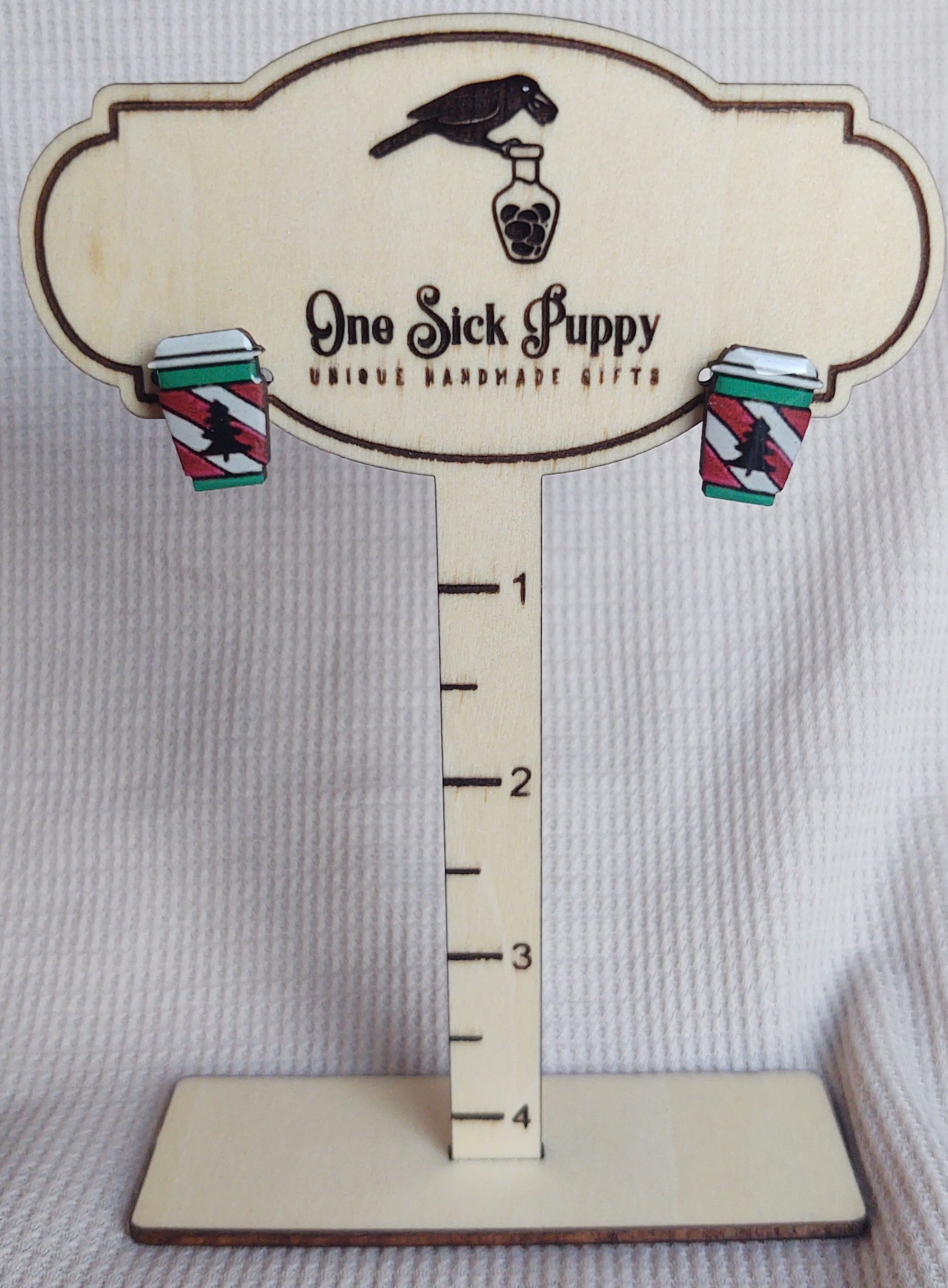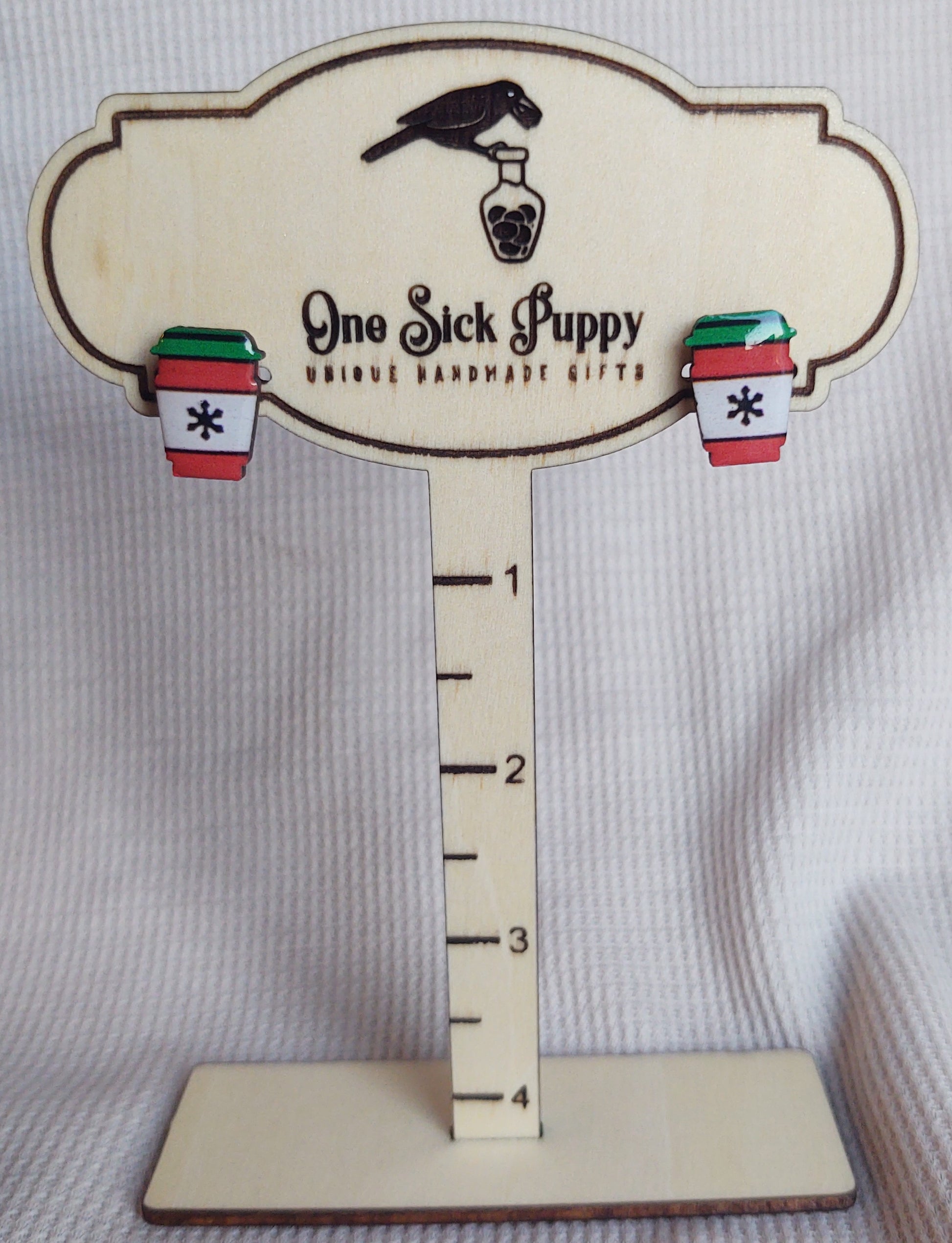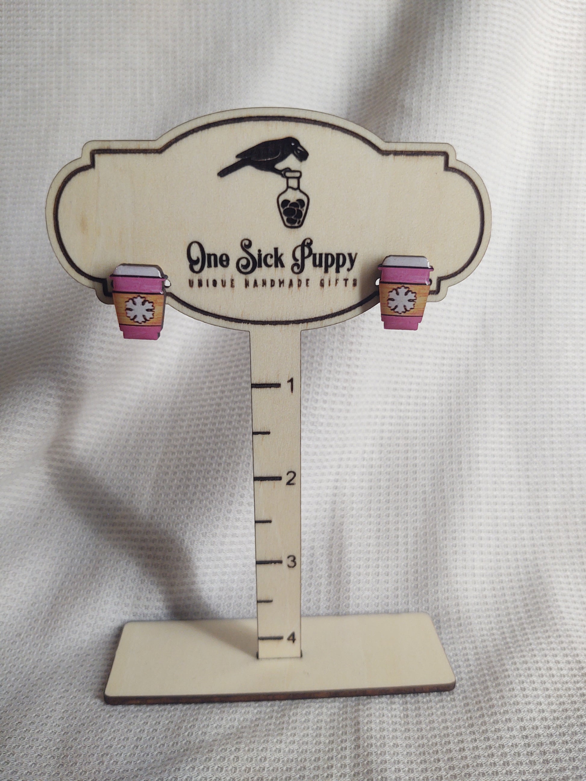 Laser cut resin topped wood earrings with nickel free stainless steel posts.