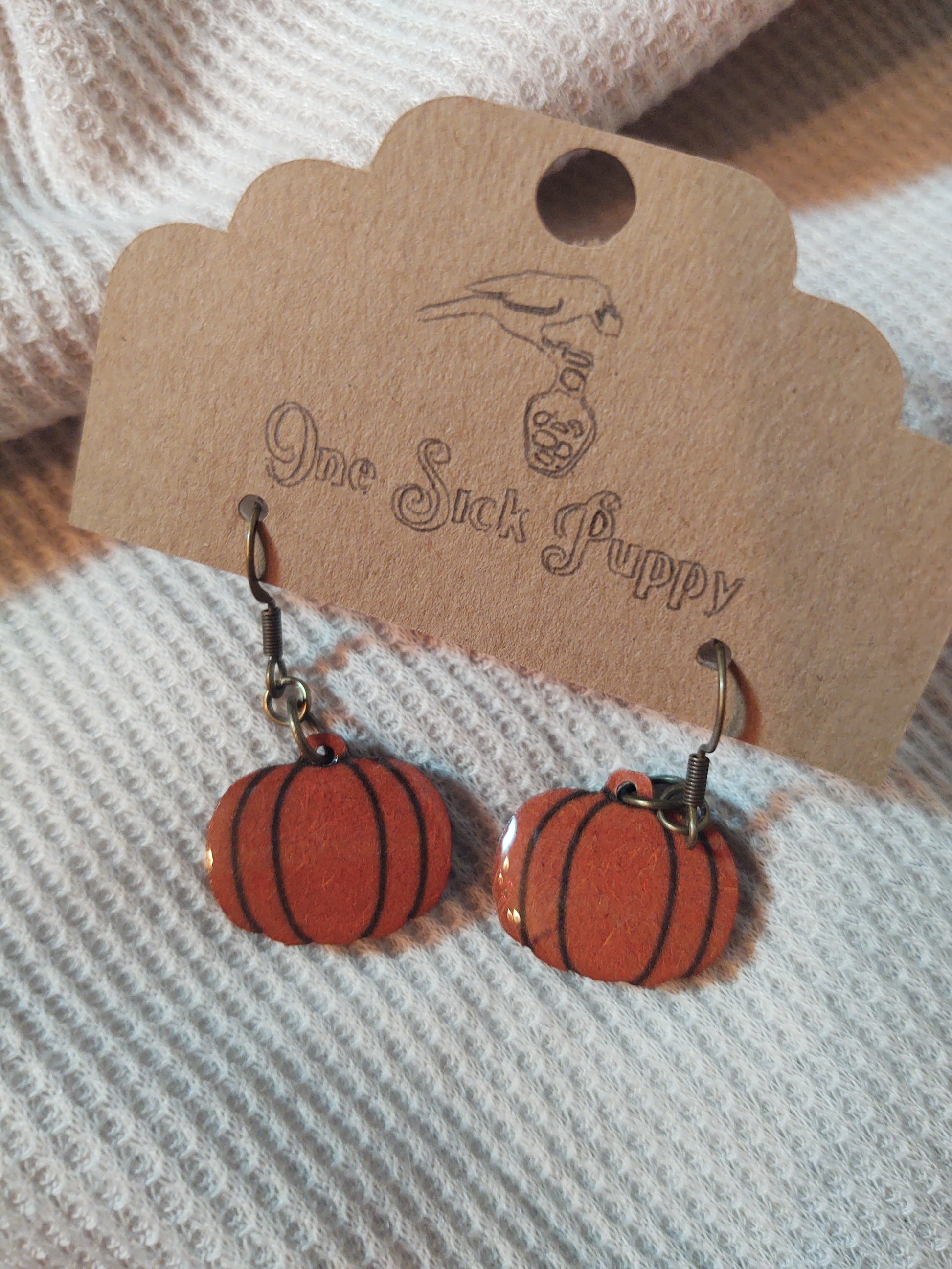 Wooden Pumpkin Dangle Earrings